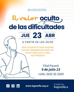 ¡Hola! El próximo jueves 23/04/2026 a las 20 hs (ARG) estás invitado a que reflexionemos juntos acerca de las posibilidades ocultas que se abren frente a las dificultades que enfrentamos en la vida y recursos prácticos para hacer de ellas, oportunidades evolutivas...